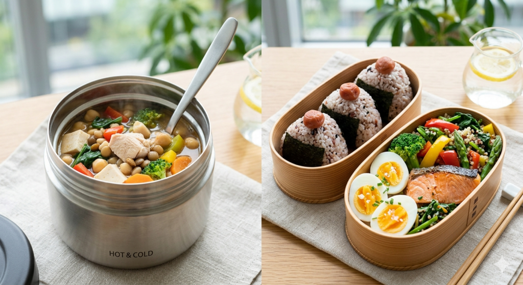スープジャーなどで一品完結型の弁当にする場合は、鶏肉や豚肉、豆腐、豆類などのタンパク質源をたっぷりと具材として投入することで、栄養価を底上げすることができると期待されます。