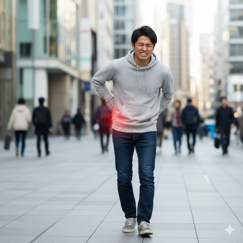 尾てい骨に何らかの損傷がある場合、歩行時よりもむしろ「座る」という動作において顕著な症状が現れる可能性が高いと言われています。椅子に腰掛けた際、座面と尾てい骨が接触することで圧力がかかり、鋭い痛みや鈍痛が生じることがあるようです。また、立ち上がろうとしてお尻に力を入れた瞬間に、ズキッとした痛みが走るというケースも報告されています。