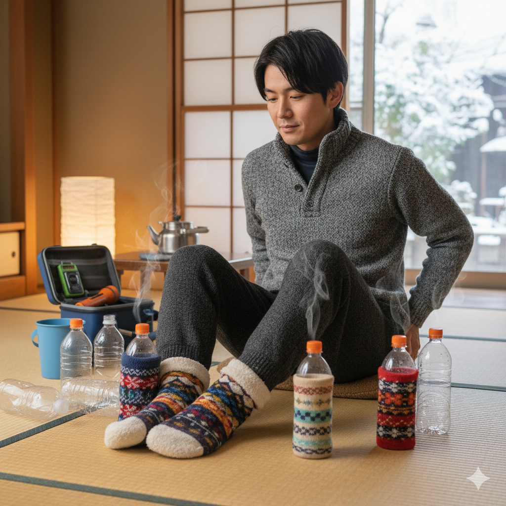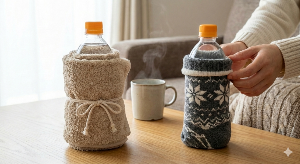 さらに、複数のペットボトルを用意することで、足元だけでなく腰回りや背中など、広範囲を温めることも可能になると考えられます。緊急時の防災グッズとしても、お湯さえ確保できれば暖を取る手段として応用できる可能性があるため、知識として持っておくことは有益かもしれません。