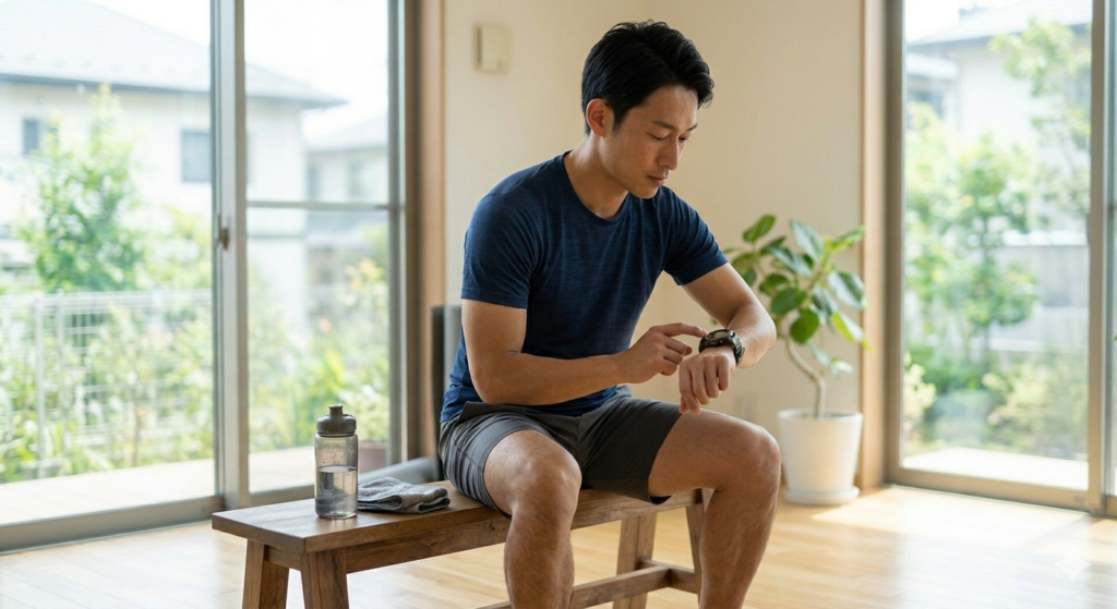 ただし、これには個人差があり、種目のきつさやその日の体調によっても適切な時間は変化する可能性があるため、自身の身体の反応を観察しながら柔軟に調整していくことが望ましいと言えそうです。